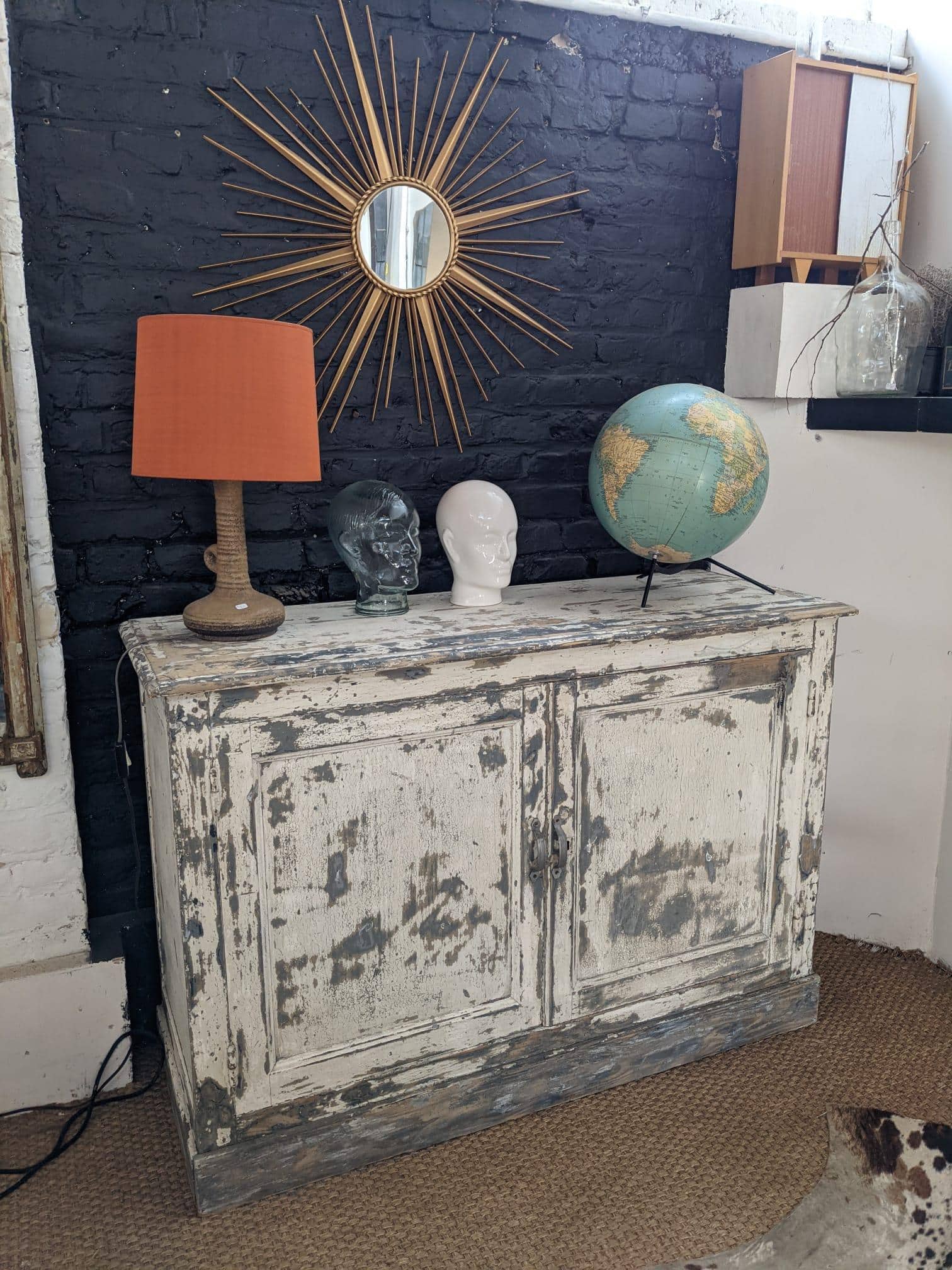 - Mobilier récupéré et restauré : buffets vintage, fauteuils rétro, tables en bois massif…
